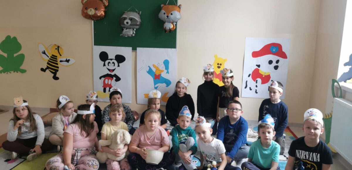 Dzień Postaci z Bajek to czas w którym uśmiech nie schodził z twarzy każdego dziecka. Obchody tego dnia były wspaniałą okazją by zachęcić najmłodszych do czytania bajek. Rozwijają wyobraźnię, pamięć oraz kształtują właściwe postawy moralne. W klasie 1B można było spotkać głównych bohaterów bajek m.in. Myszkę Miki i Kaczora Donalda, Krecika, Marshalla oraz Kubusia Puchatka. Dzieci również obejrzały 2 kultowe bajki pt. ,,Miś Uszatek” oraz ,,Tabaluga” i otrzymały pamiątkowe opaski przedstawiające postacie z bajek.