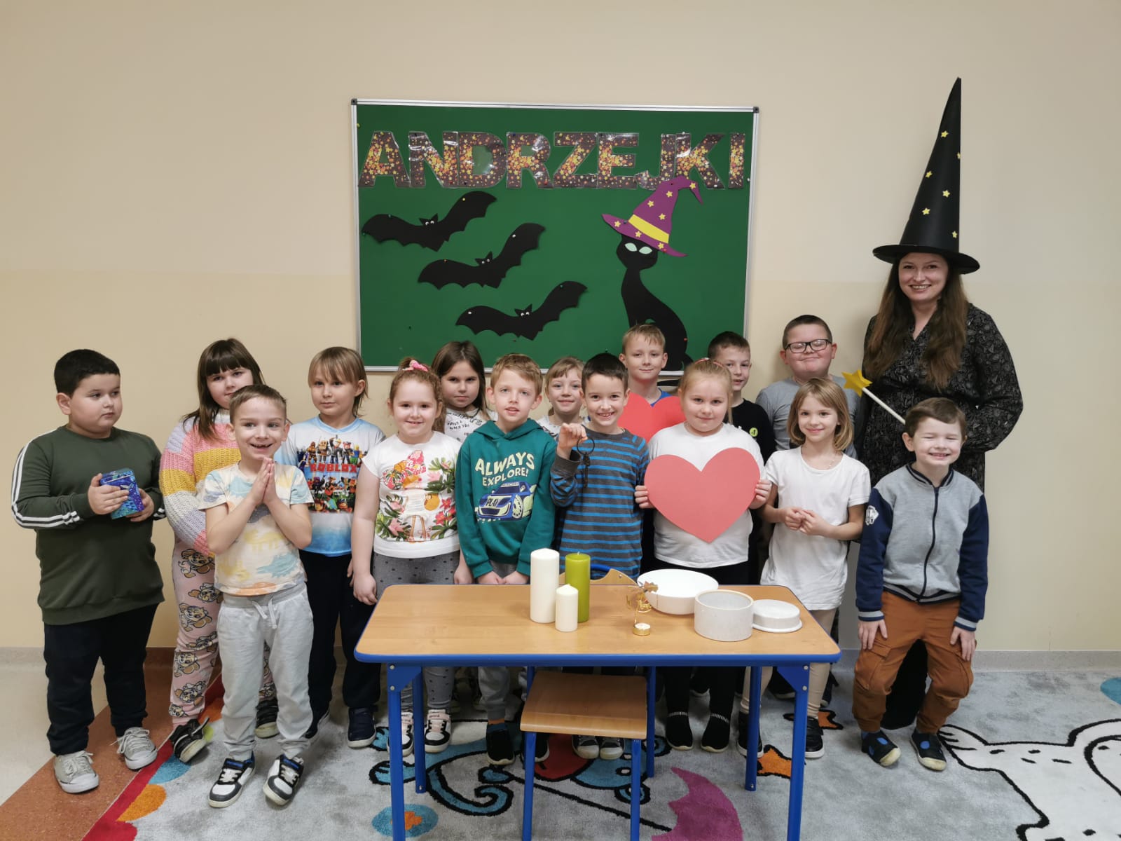 Zgodnie ze staropolskim zwyczajem w klasie 1 b odbyły się Andrzejki. Każdy z niecierpliwością przekłuwał papierowe serca, losował magiczne bileciki z nazwami zawodów. Były też tańce i zabawy. Aby umilić ten czas rodzice zadbali poczęstunek za co bardzo dziękujemy. Na koniec każdy wykonał klucz, który ozdobił według swoich upodobań. Było wiele zabawy, radości i uśmiechu.