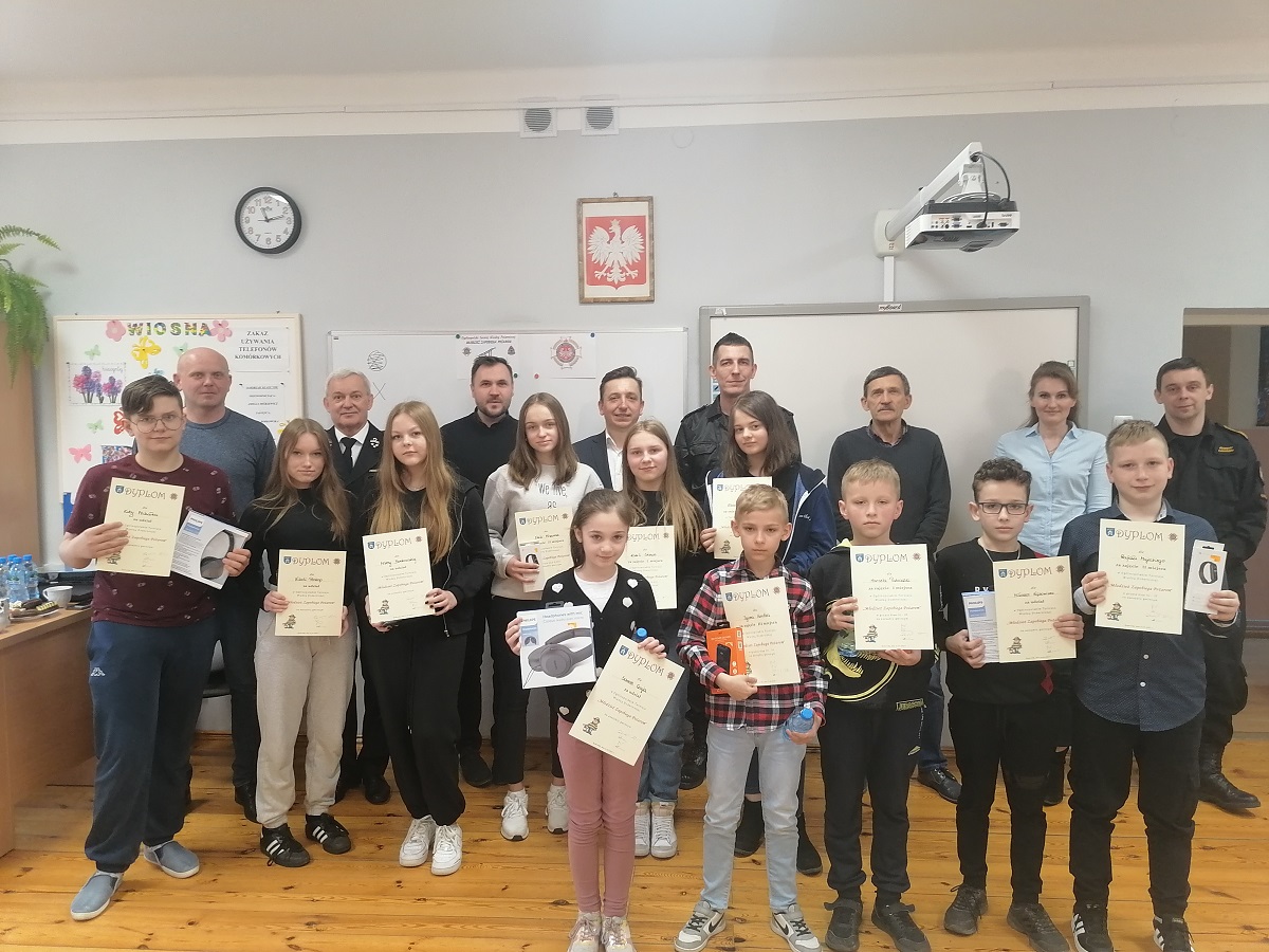 31.03.2022r. uczniowie naszej szkoły brali udział w gminnych eliminacjach Ogólnopolskiego Turnieju Wiedzy Pożarniczej pod hasłem „Młodzież Zapobiega Pożarom” zorganizowanym w ZPS w Komornikach. Miło nam poinformować, że uczeń klasy IVa, Rafał Majecki zajął II miejsce w kategorii klas I-IV i zakwalifikował się do konkursu na szczeblu powiatowym.