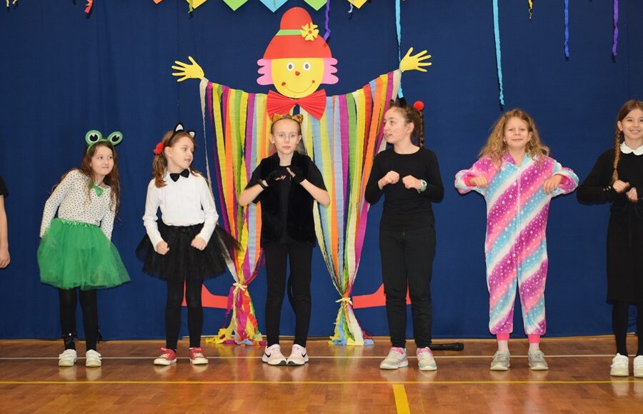 25 stycznia korytarzami naszej szkoły od rana przechadzały się księżniczki, rycerze, pszczółki, królewny, policjanci, strażacy… nie sposób zliczyć i wymienić wszystkich postaci. Dzieci z klas I-III przebrały się za bohaterów znanych bajek specjalnie na bal karnawałowy. Przebierańcy spędzili miłe chwile uczestnicząc we wspólnych zabawach prowadzonych przez Klauna Tuptusia i jego pomocnicę.