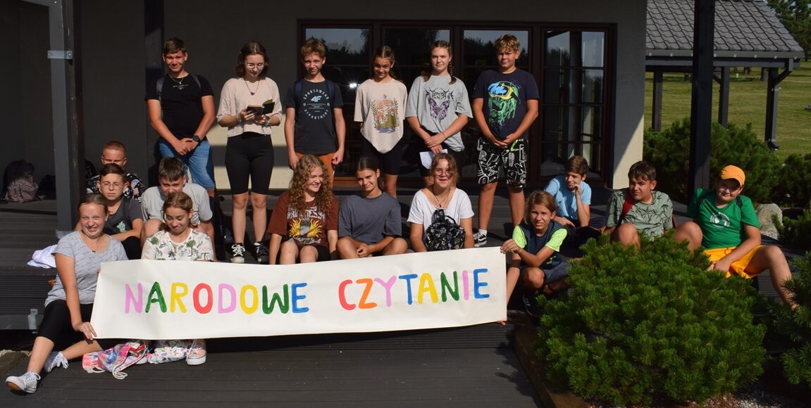 W czasie odpoczynku dziewczynki należące do klubu książki czytały fragment powieści „Nad Niemnem” Elizy Orzeszkowej opisujący piękno nadniemeńskiej przyrody.