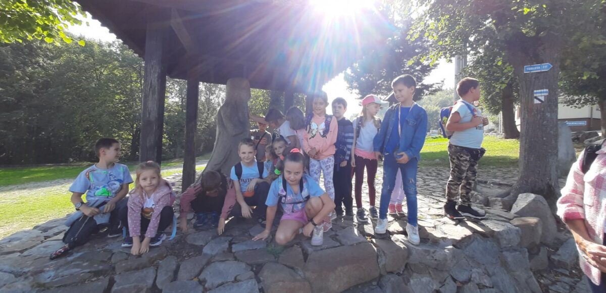 Korzystając z uroków pięknej jesieni drugoklasiści pojechali na wycieczkę w Góry Świętokrzyskie. Zaplanowaliśmy zwiedzanie nowopowstałego Parku Legend oraz Muzeum Starożytnego Hutnictwa w Nowej Słupi. Prastare Góry Świętokrzyskie kryją wiele tajemnic przekazywanych z pokolenia na pokolenie w legendach i podaniach. Znają je mieszkańcy tych gór, którzy spisują je dla potomnych. My poznaliśmy je odwiedzając Park Legend- obiekt, w którym zastosowano najnowocześniejsze technologie, przyczyniające się do pełnego przeżycia niezwykłych historii skrywanych od pokoleń. Kierując się światłem przemierzaliśmy kolejno ścieżki poznając coraz to nowe legendy. Cudowny nastrój, muzyka, światło i trójwymiarowe postacie wprowadzały nas w nastrój tamtejszego miejsca. Pobyt w parku zakończyliśmy wirtualnym lotem na miotle. Po wyjściu z obiektu udaliśmy się do Karczmy Mnicha na pyszny obiad, a po nim do Muzeum Starożytnego Hutnictwa znajdującego się nieopodal. W Starożytnej Osadzie z ery żelaza odbyliśmy zajęcia pt. „Ogień i żelazo”, podczas których w warsztacie kowalskim pod okiem instruktora obrobiliśmy wyciągniętą z pieca łupkę żelaza. Na koniec dzieci brały udział w zawodach rzucania oszczepem na odległość.