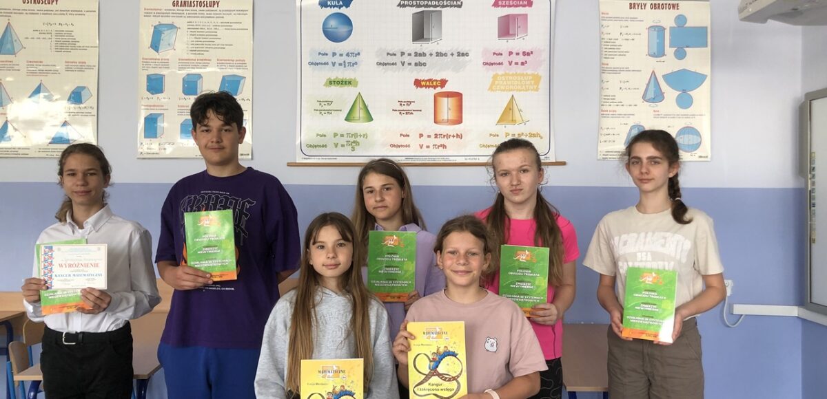 Dnia 21 marca 2024 roku odbyła się kolejna edycja Międzynarodowego Konkursu „Kangur matematyczny”, którego głównym celem jest szeroka popularyzacja matematyki. Uczniowie naszej szkoły tradycyjnie wzięli w niej udział. Tegorocznych uczestników było aż 21, co świadczy o rosnącej popularności i zainteresowaniu matematyką. Uczniowie startowali w trzech kategoriach: