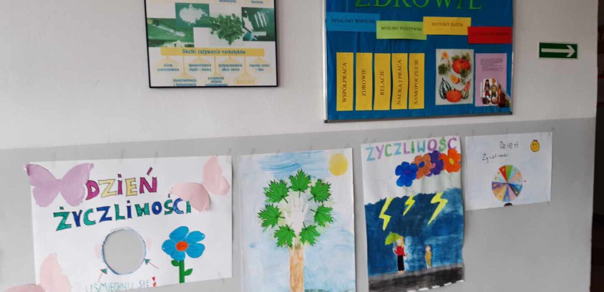 Uczniowie starszych klas brali udział w Dniu Życzliwości. Pisali prace na temat konieczności pomagania potrzebującym, uczestniczyli w pogadankach na ten temat, wykonali plakaty. Warto pomagać. Dobro powraca.